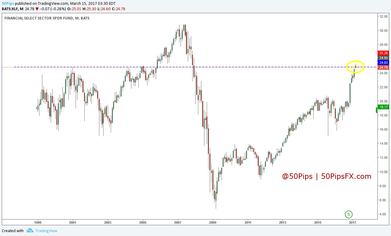 As followed up on Twitter, don’t forget to keep an eye on Financials. we have been on this for a while and feel that the way this chart is behaving, especially after the hike, is one of the key tells. The first chart is the monthly view we posted at the beginning of the month and the second, the recent action on the 1h.